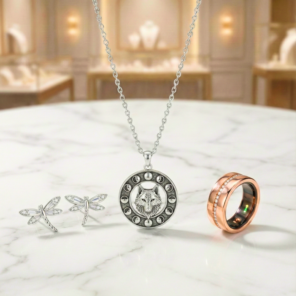Wolf Pendant Necklace 925 Sterling Silver Moon Phase