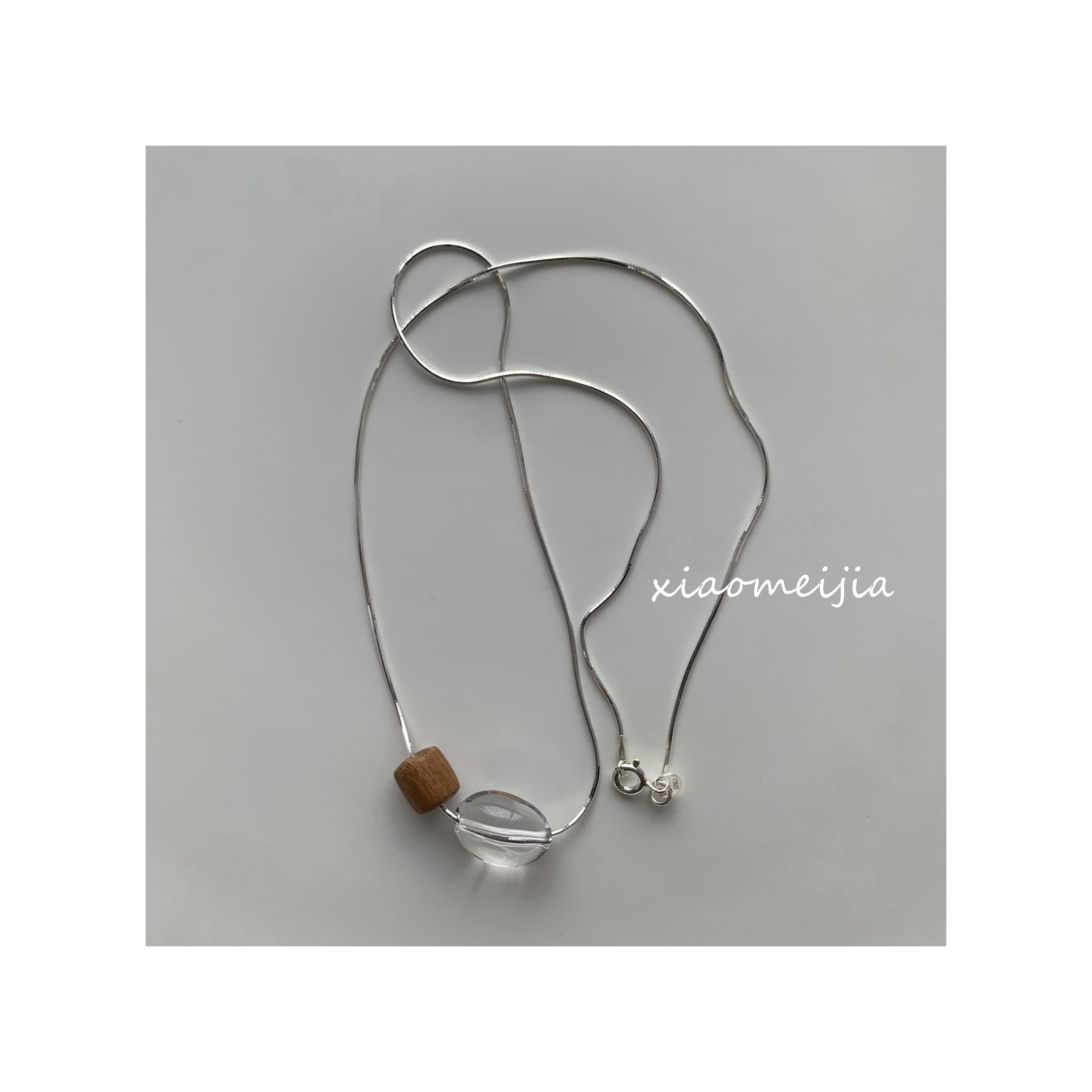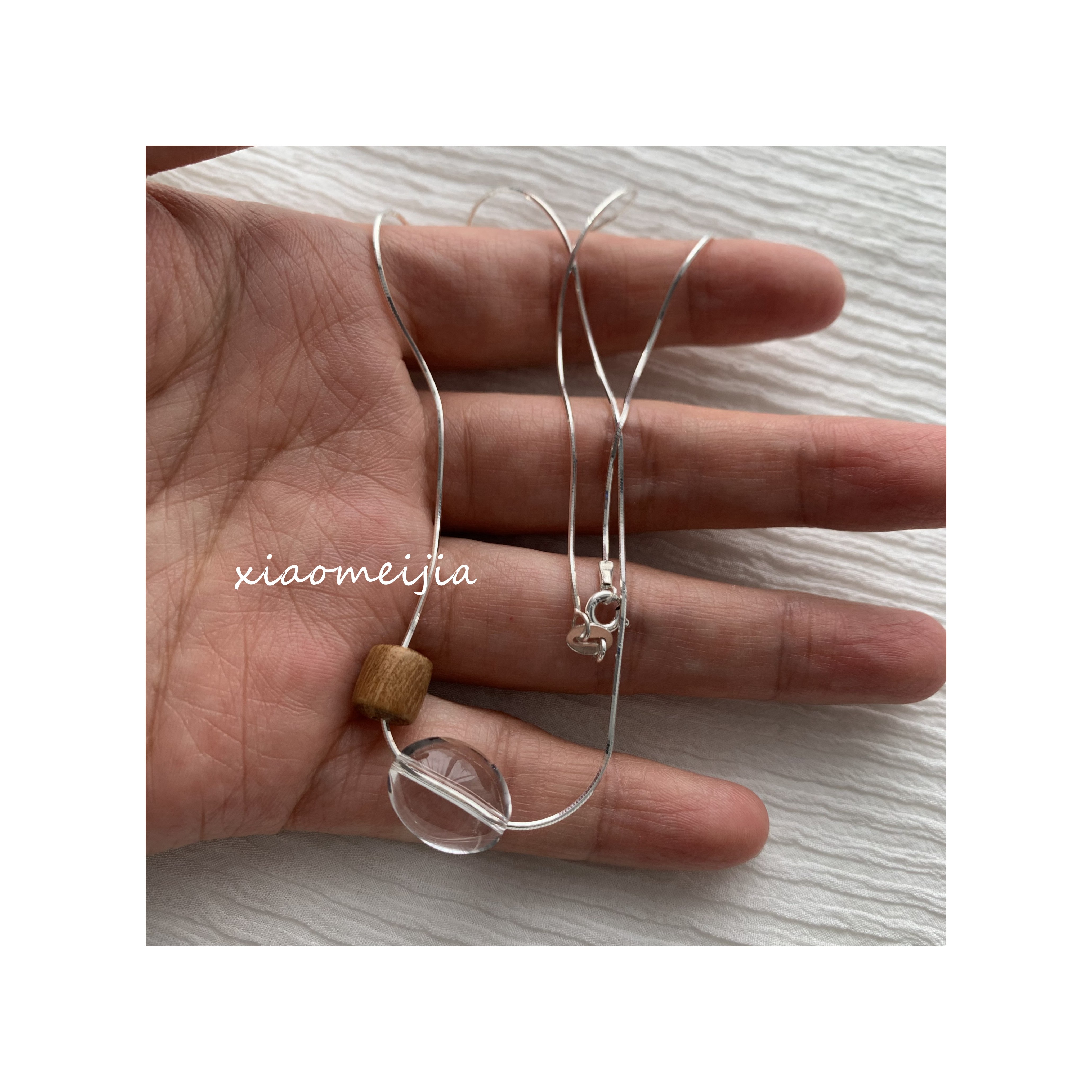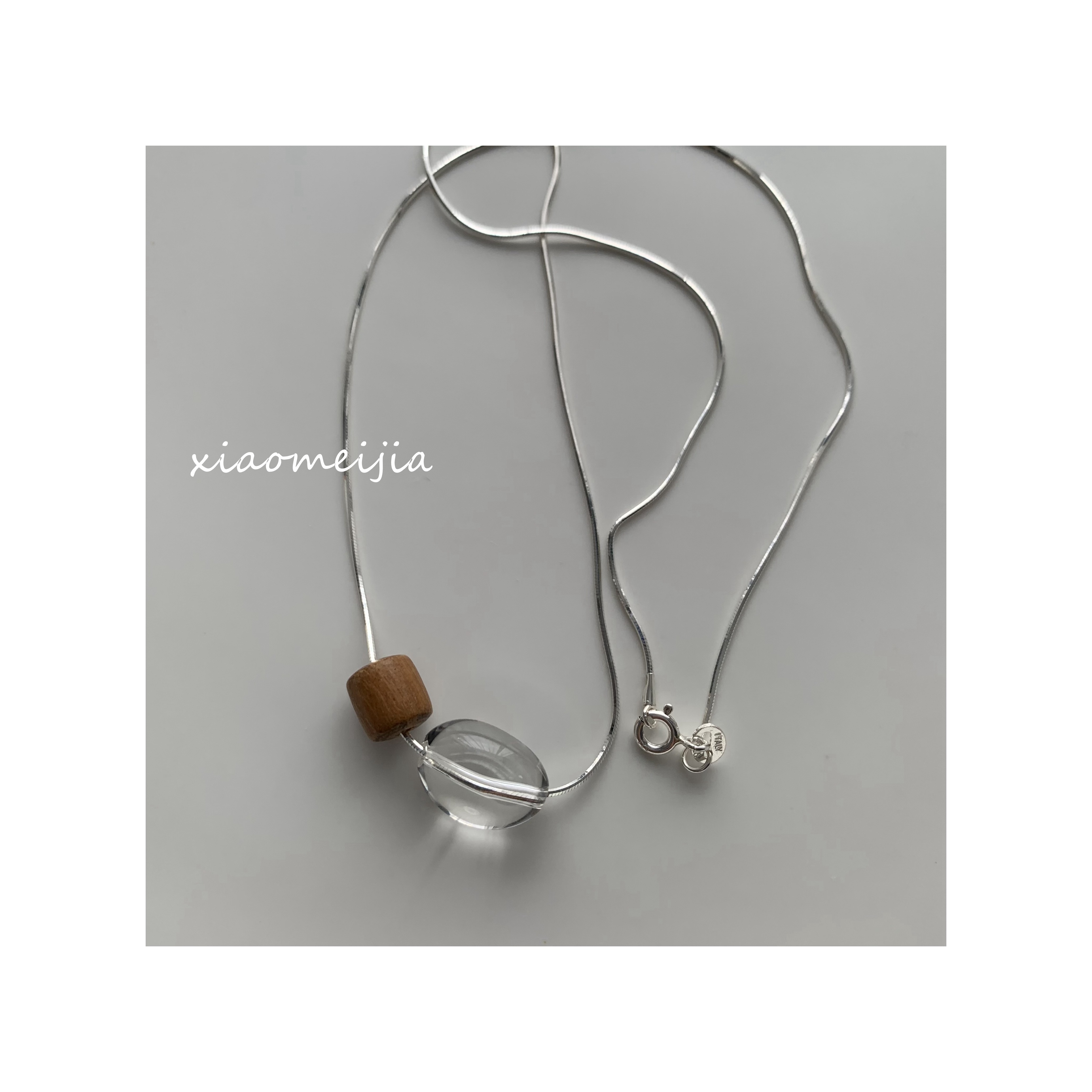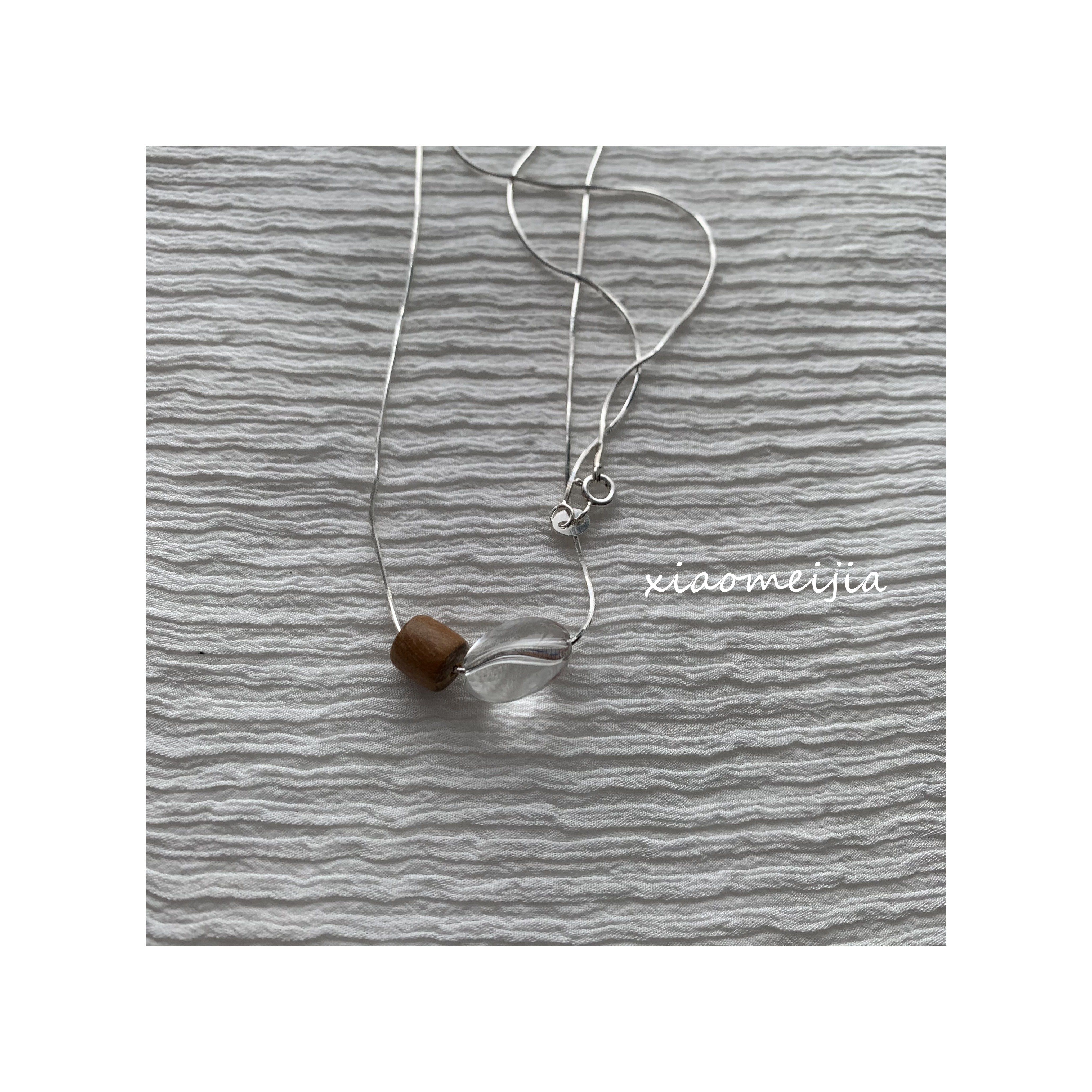 Material: 925 sterling silver + natural Brazilian white crystal + natural gold wooden beads