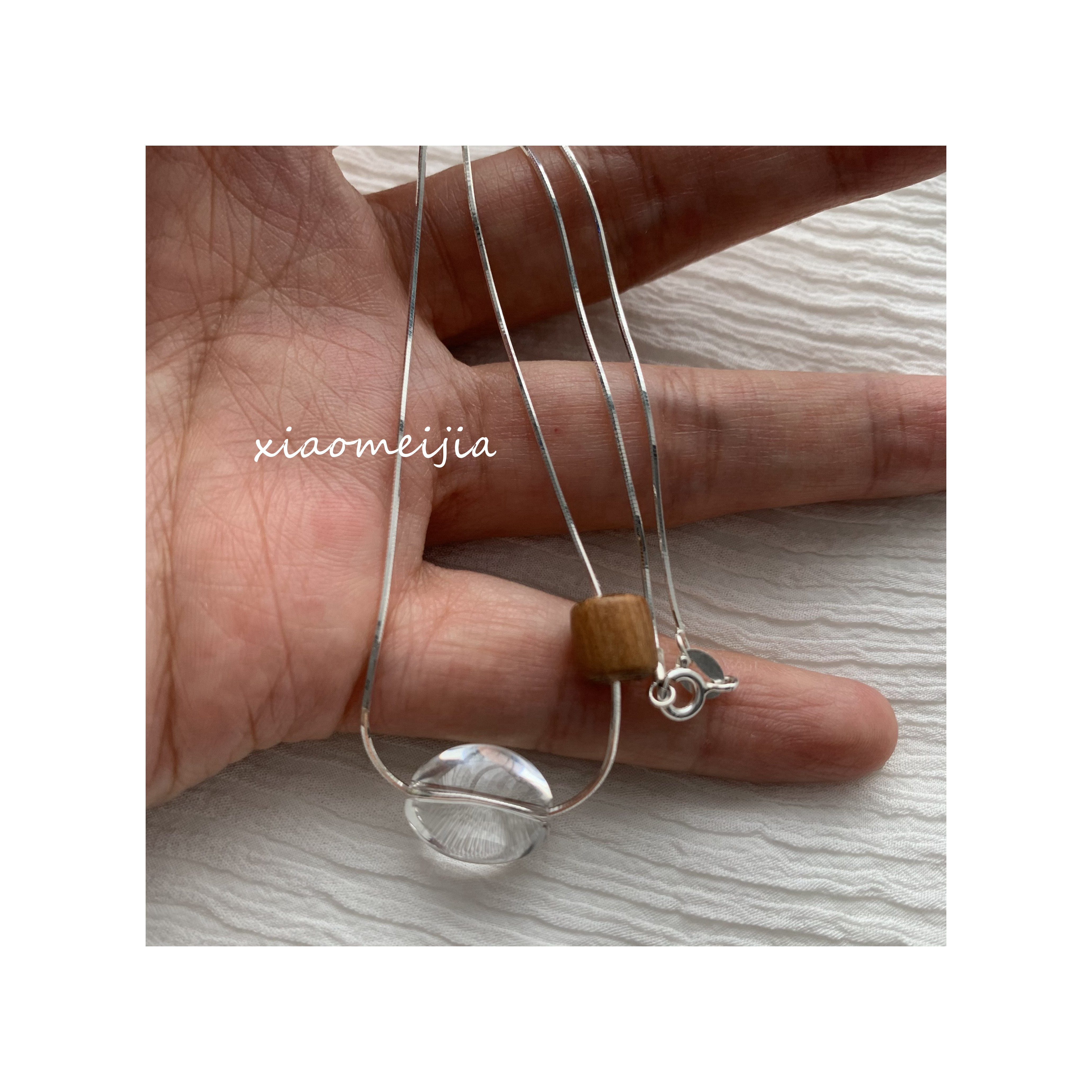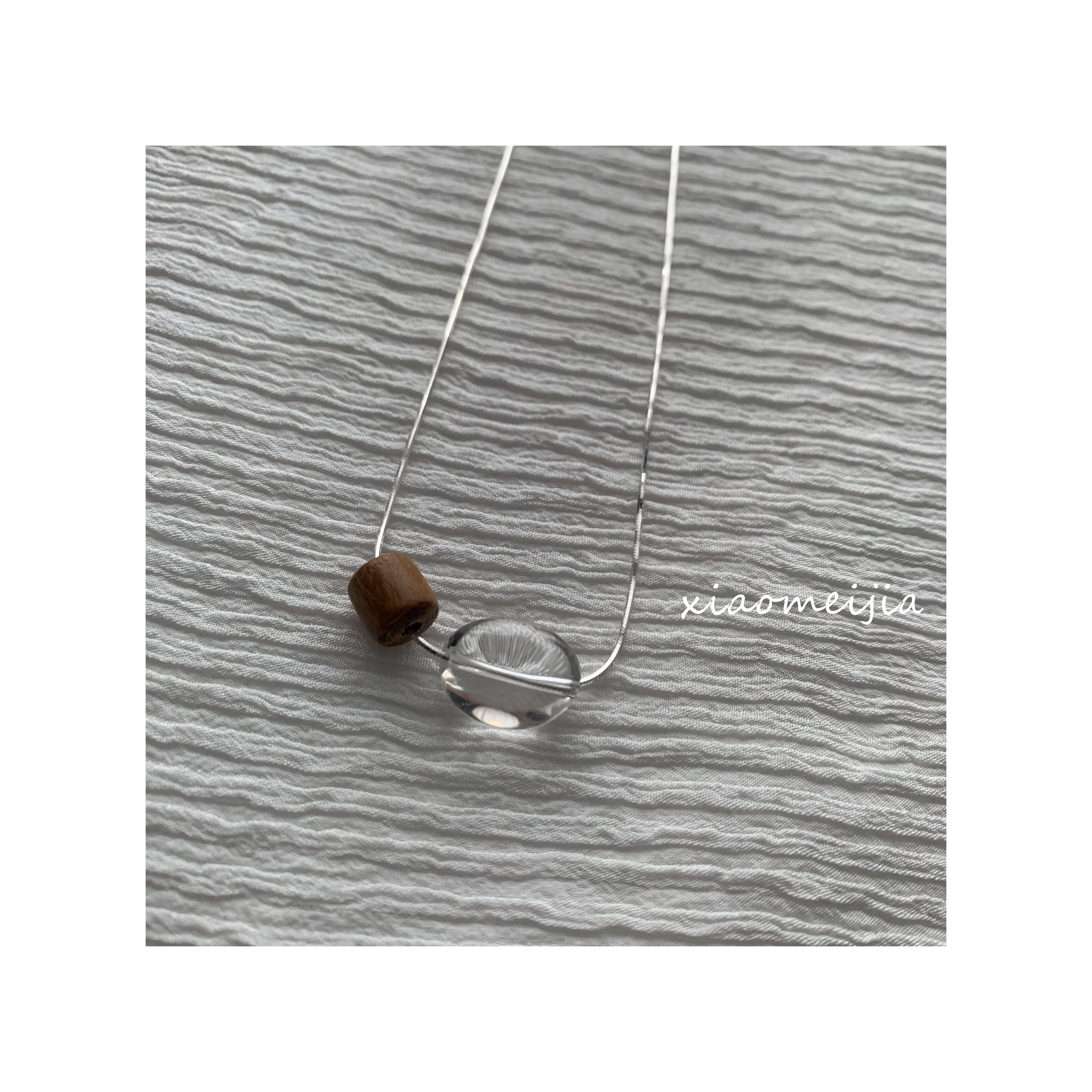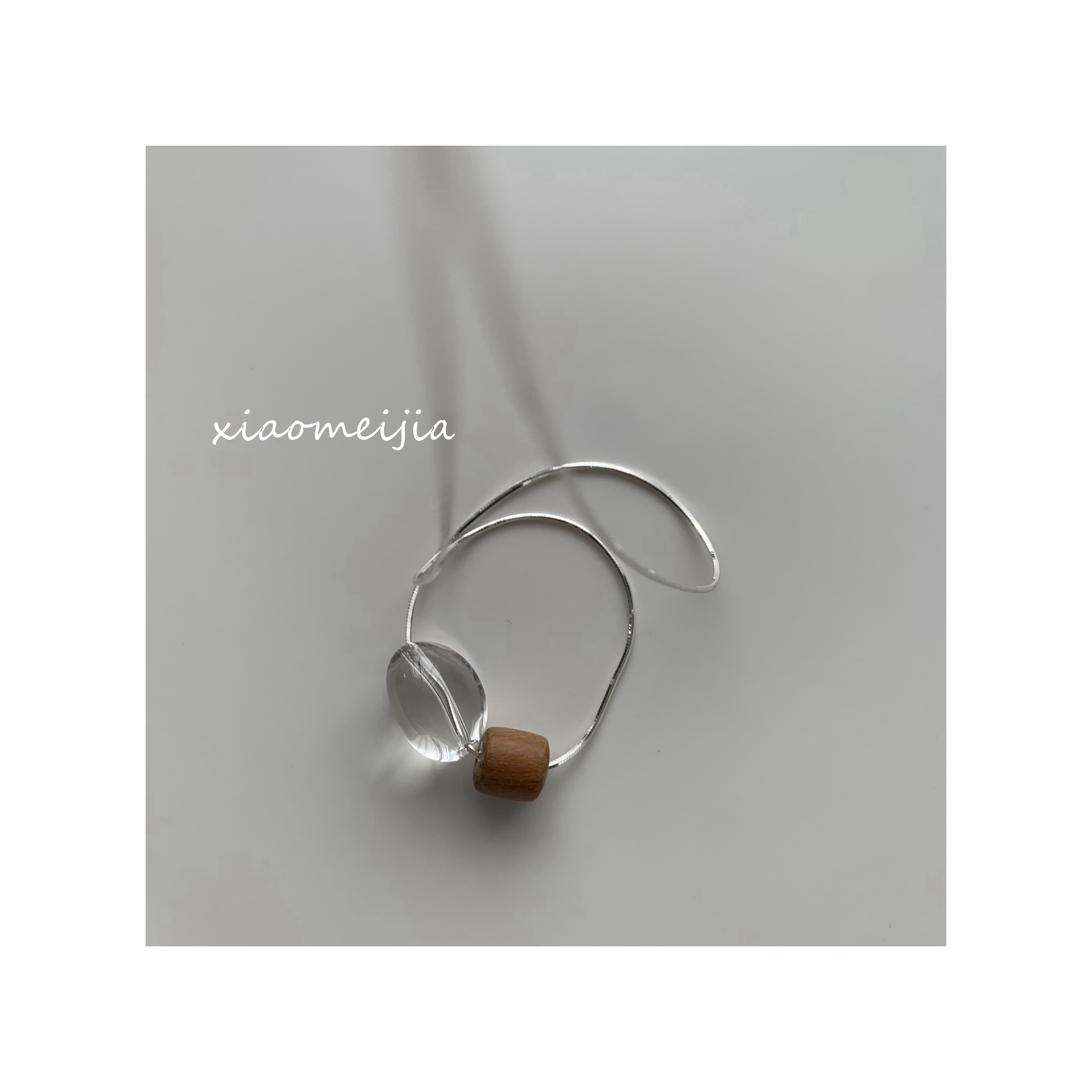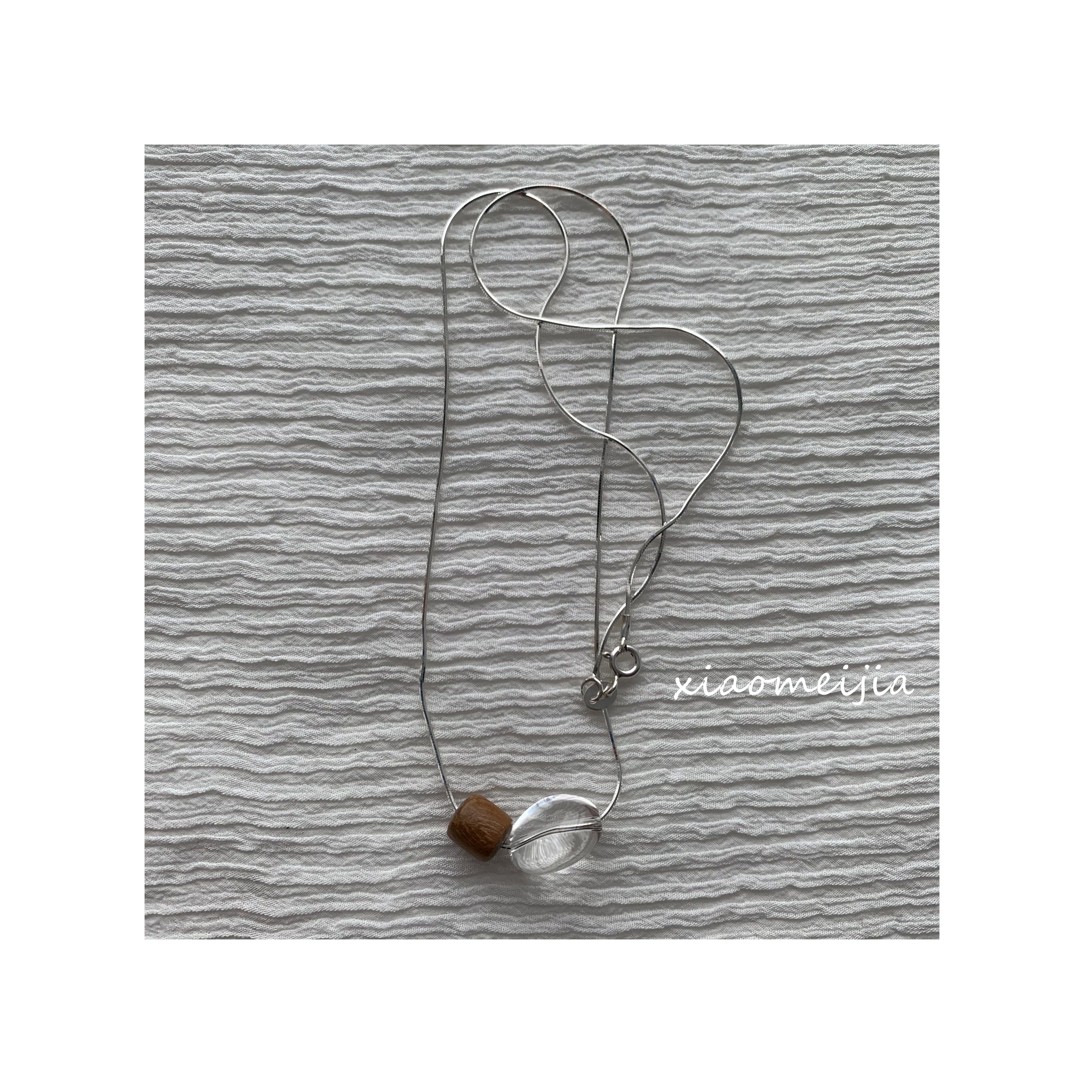 Material: 925 sterling silver + natural Brazilian white crystal + natural gold wooden beads